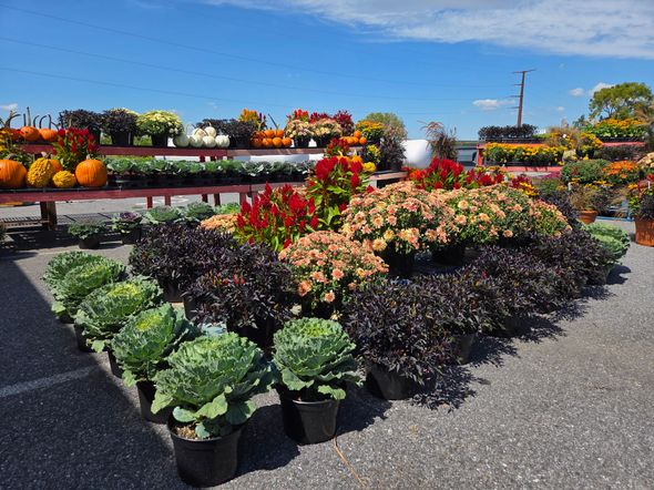 Our greenhouse is fully stocked and ready for you to explore! Wander through a sea of vibrant mums, find your perfect pumpkins and quirky gourds of every shape and size, and discover stunning pre-made fall planters that make decorating a breeze. From front porch fall decor to the perfect autumnal accents for your garden, we have everything you need and so much more!